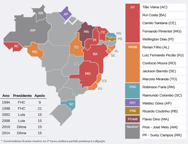 PT mantém número de apoios desde 2002: 15 Estados aliados